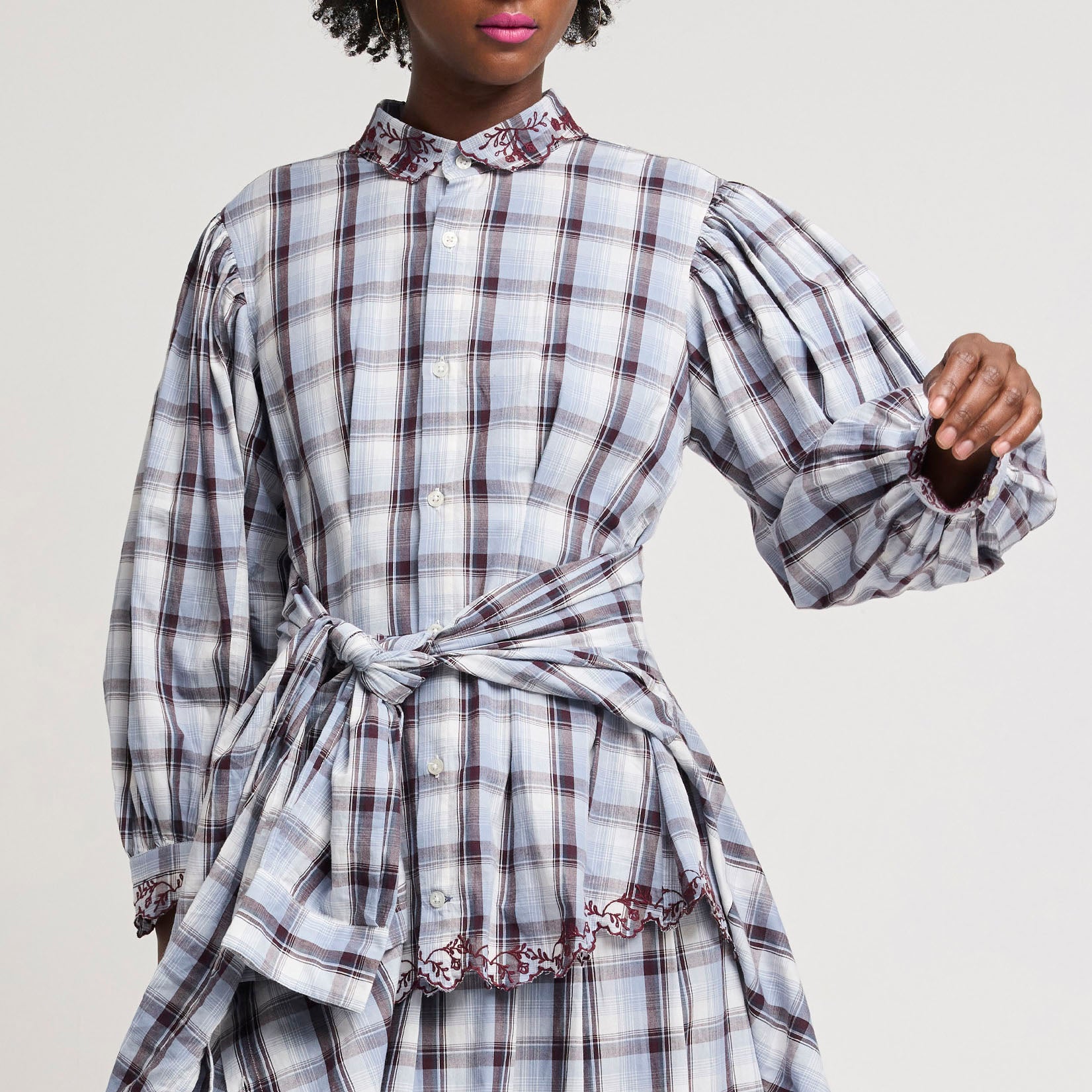 Embroidered Anomie Blouse in Plaid