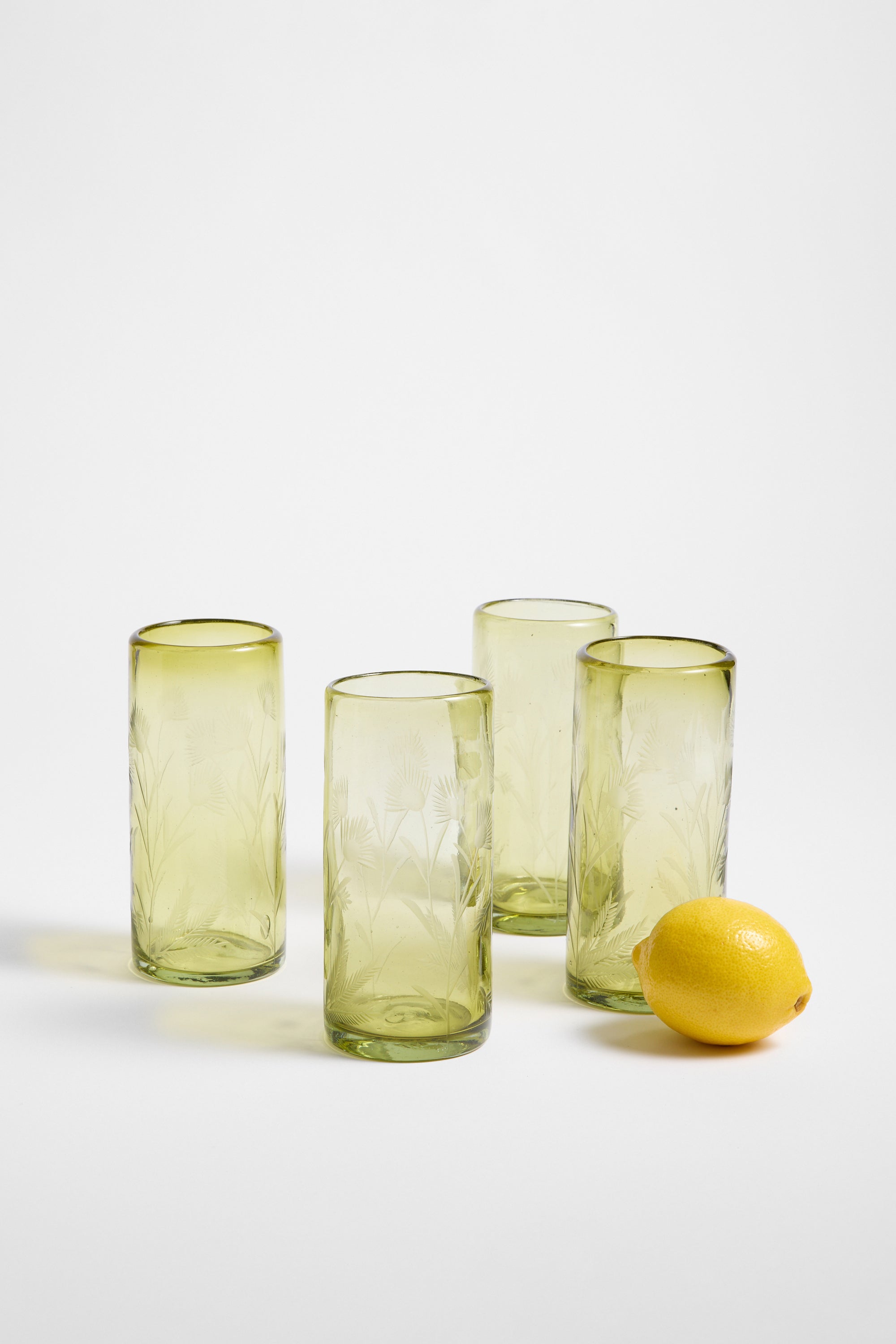 Etched Thistle Recycled Glassware, Highball SET OF 4