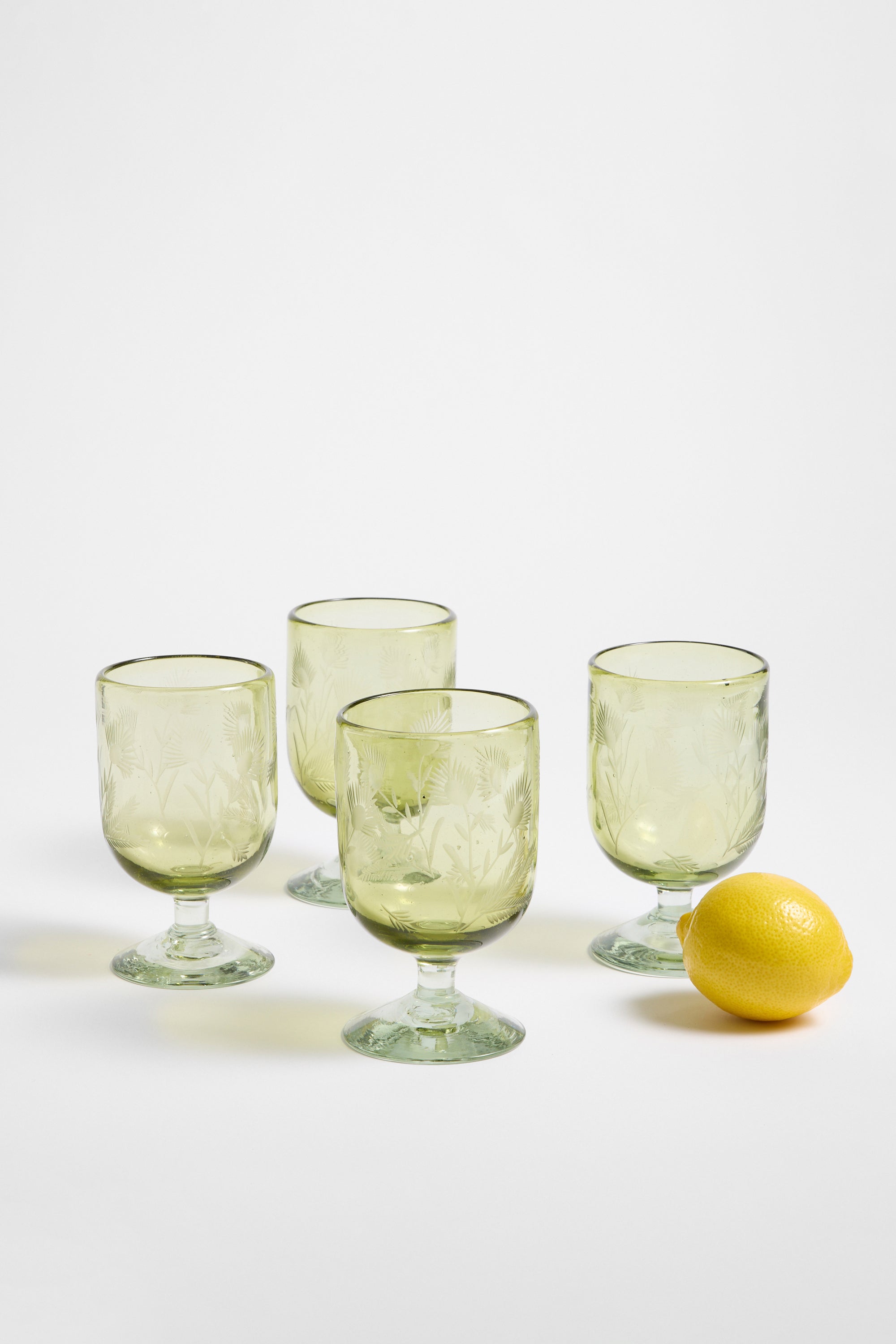 Etched Thistle Recycled Glassware, Wine Glass SET OF 4