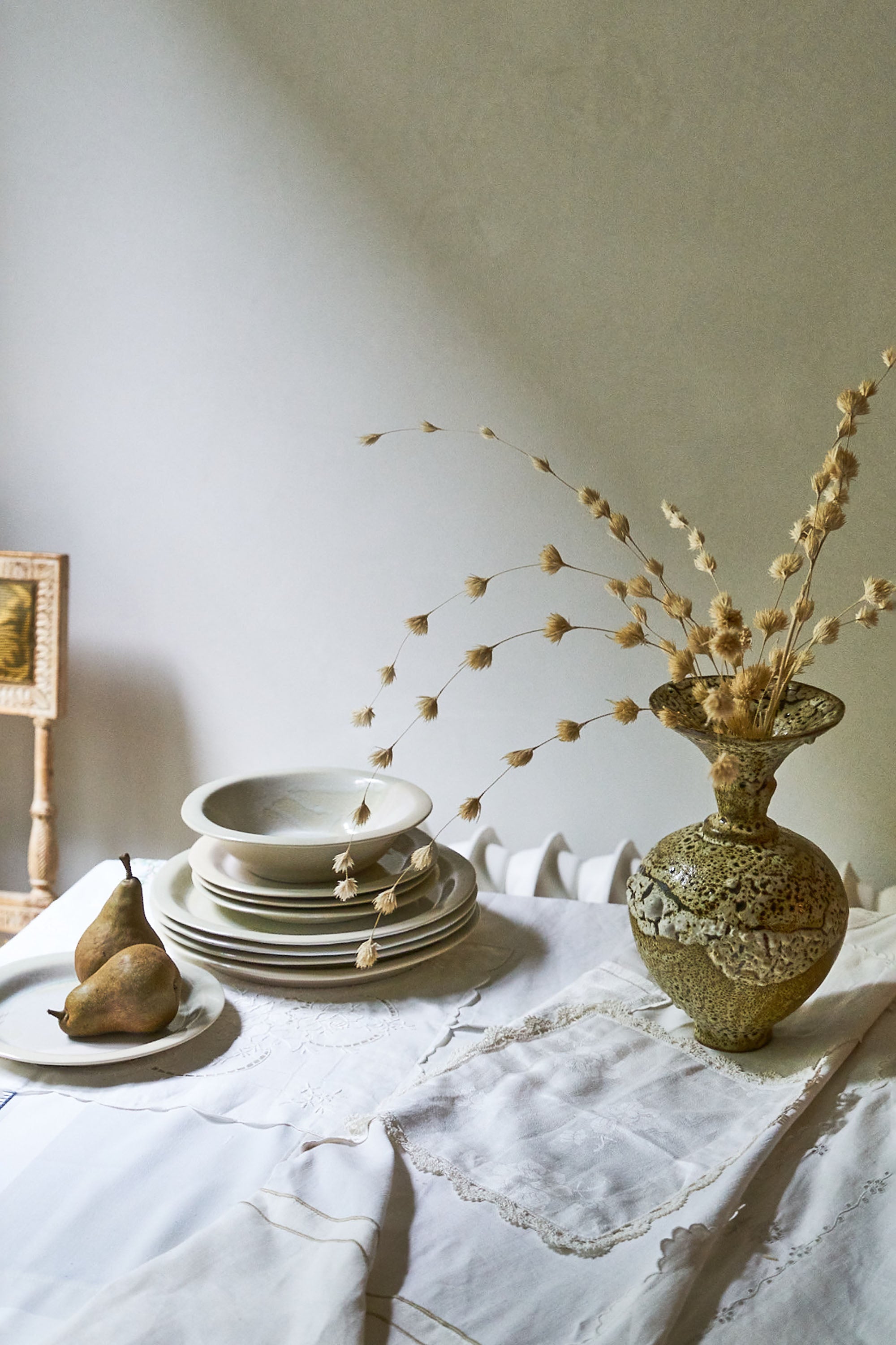 SaleAnastasia’s Ashes Ceramic Dinner Plate with Cream & Sage Overglaze