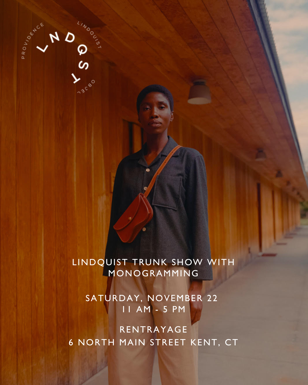 Cult bag brand Lindquist will be at Rentrayage Saturday November 22nd with the new collection. Monogramming will be available .